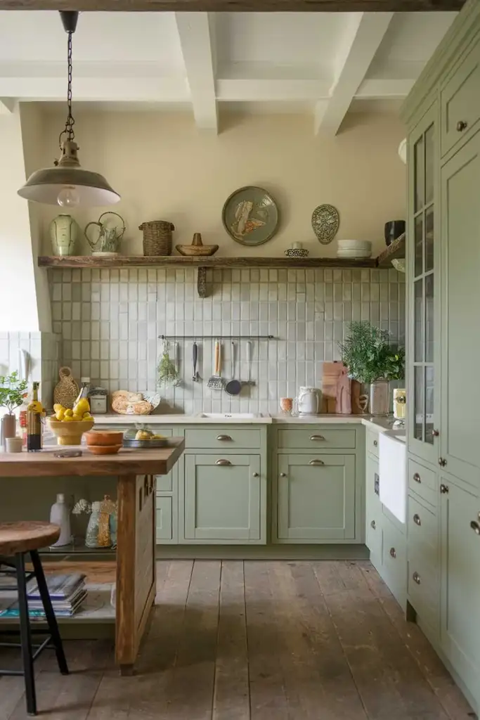 13. Sage Green in a Farmhouse Kitchen