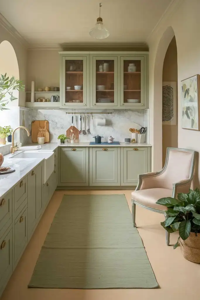 11. Sage Green and Marble Countertops
