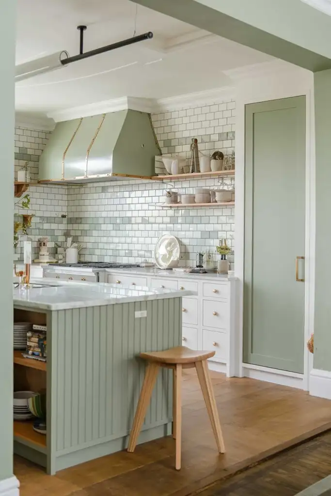 3. Sage Green and White Backsplash
