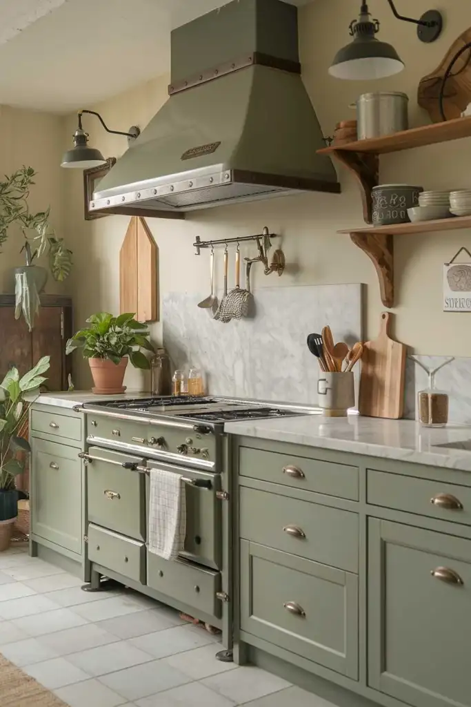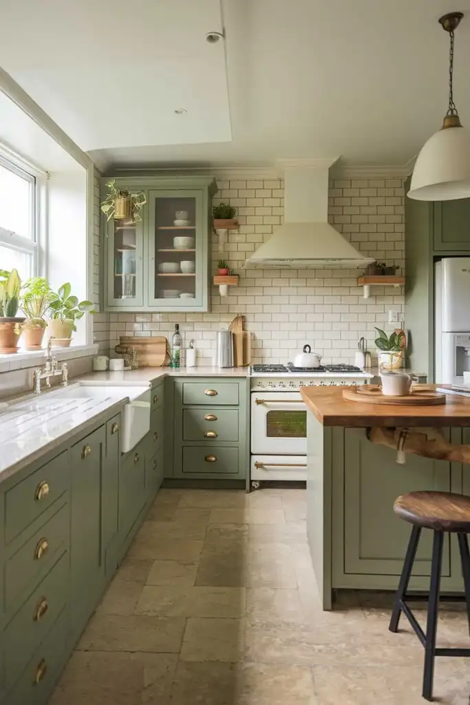 Combine sage green with brass or gold fixtures for an elegant, modern twist. This combination adds warmth and sophistication, making your kitchen feel more luxurious.