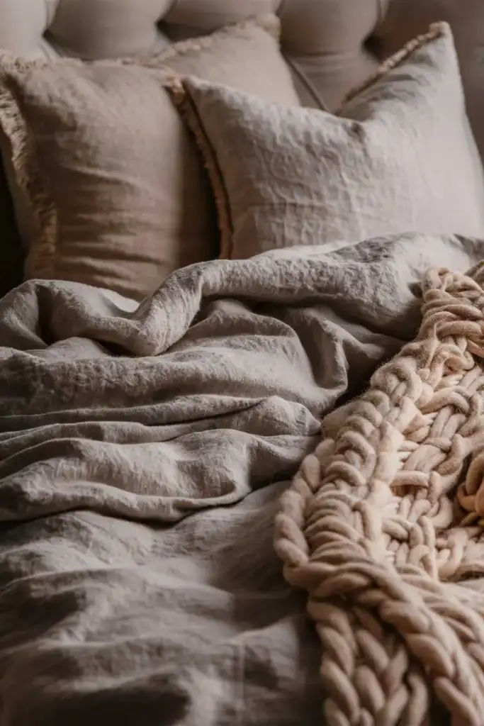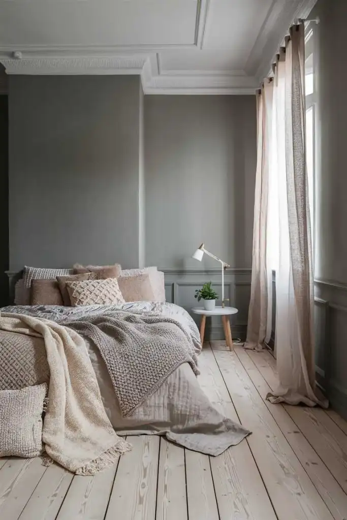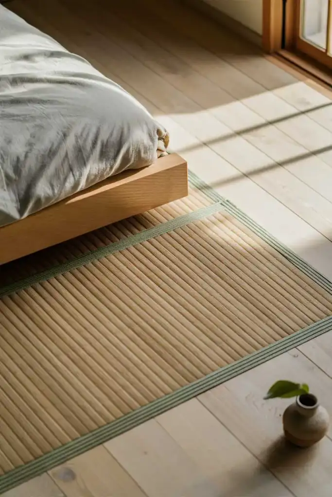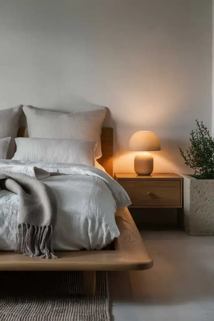 Texture plays an important role in bringing depth and warmth to a Japandi-inspired bedroom. Use textiles such as woven rugs, linen curtains, and wool blankets to add layers and visual interest. Even in a small room, these elements help create a cozy, inviting atmosphere without overwhelming the space.
