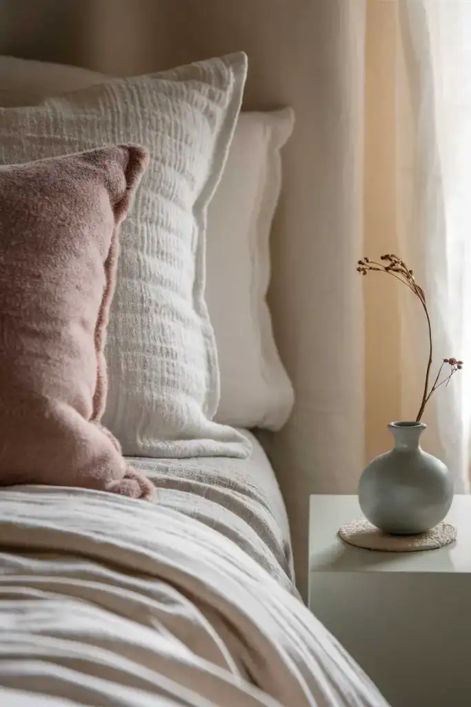 When decorating, be selective. Choose only a few key accessories such as simple artwork, a cozy throw blanket, or a vase with fresh flowers. These little details can make a big impact without overwhelming the space. Stick to essential décor pieces that bring peace and simplicity to the room.